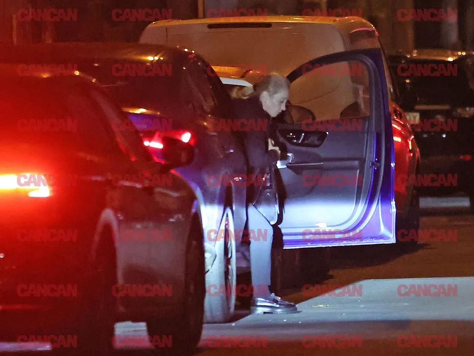 Sorina Blaj coboară din altă mașină, seara, un Mercedes GLC
