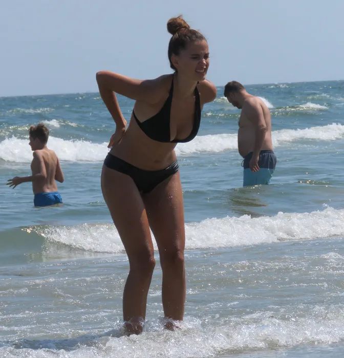 Soția vestitului fotbalist s-a unduit senzual pe plajă + Ce gest surprinzător a făcut în valuri