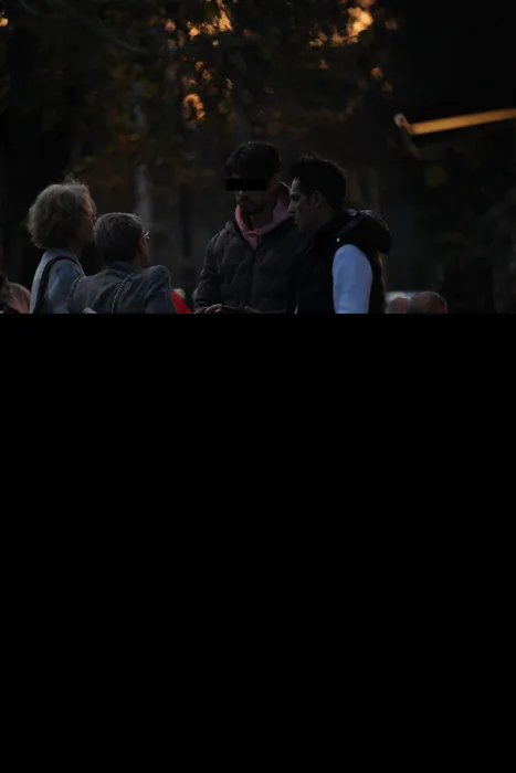 Artistul stă de vorbă cu prietenii săi, în fața restaurantului (Foto: CANCAN.RO)