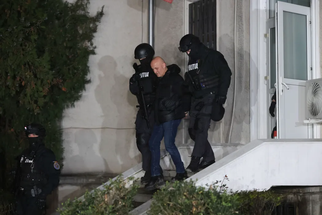 Horațiu Potra este escortat de polițiști în afara sediului IPJ Prahova, în Ploiești, 8 decembrie 2024. Inquam Photos / George Călin