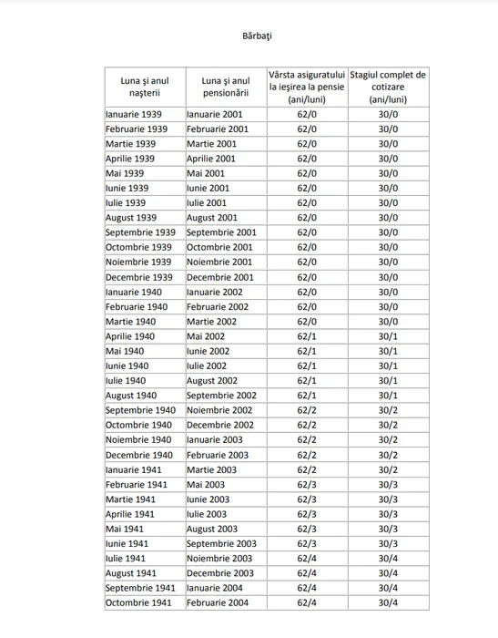 Tabel complet pentru femei și bărbați | Ce pensie vei primi, în funcție de luna și anul nașterii și de stagiul complet de cotizare
