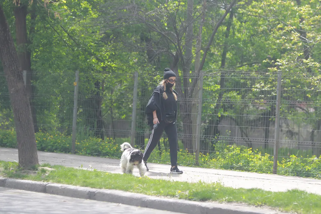 Tania Budi și-a plimbat câinele în „stil ninja”. S-a camuflat cu mască, ochelari, căciulă și…