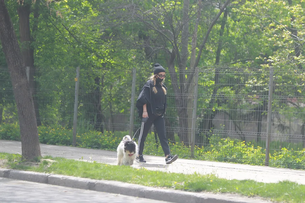 Tania Budi s-a camuflat cu mască, ochelari, căciulă și a ieșit la plimbare cu prietenul necuvântător