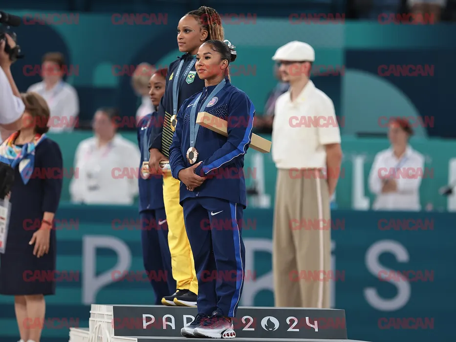 Podiumul în finala de la sol - de la Jocurile Olimpice 2024/ sursă foto: CANCAN.RO
