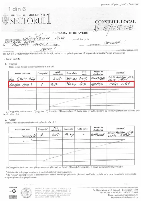 Declarația de avare a lui Florin Crișu