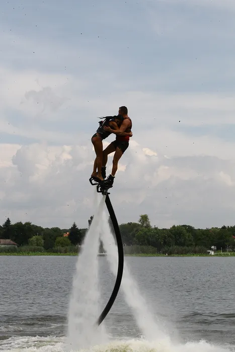 Daniela Crudu este în culmea fericirii, în aer, alături de instructor