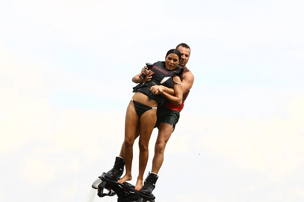 Daniela Crudu este în culmea fericirii, în aer, alături de instructor