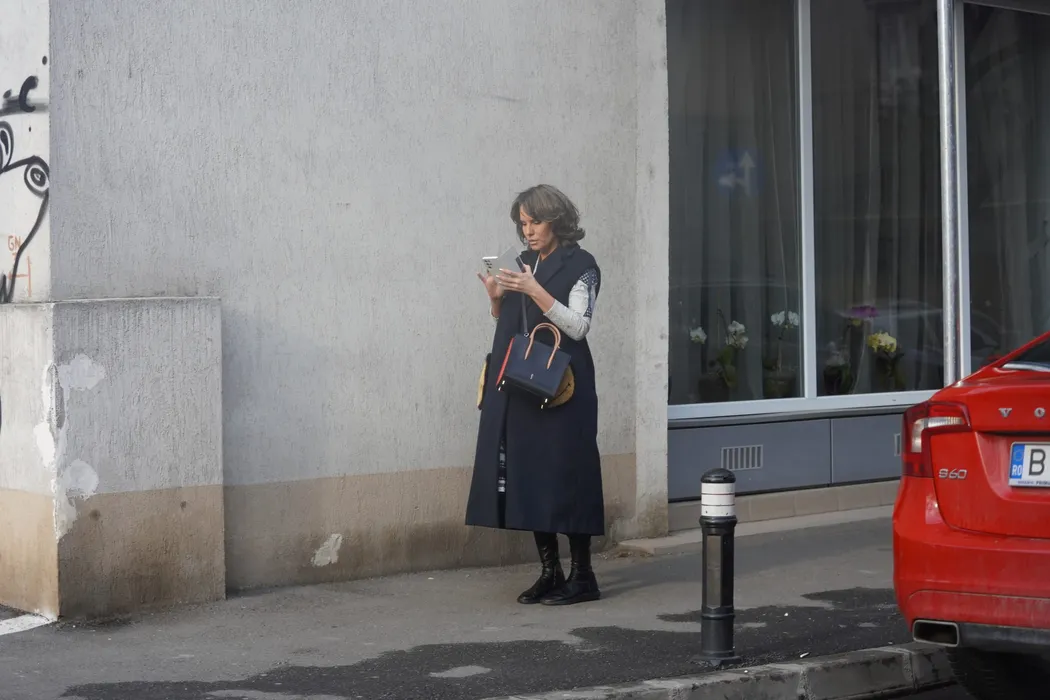 Anna Lesko își verifică mesajele din mers (Foto: CANCAN.RO)