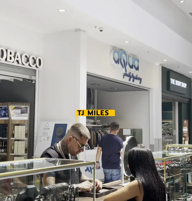 TJ Miles probează o pereche de cercei, în Mall Băneasa, la o insuliță/ Sursă foto: CANCAN.RO