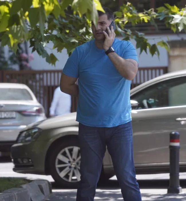 Toni Iuruc vorbește la telefon, înainte să intre în magazin
