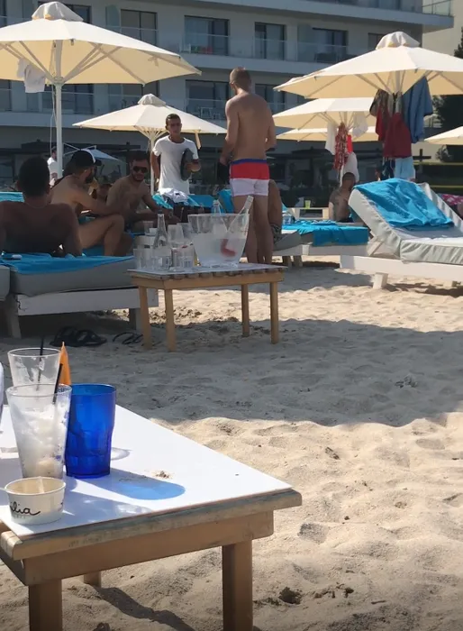 Trei fotbaliști din Liga I, filmați pe plaja milionarilor ca la cârciumă: țigări și bere fără număr!