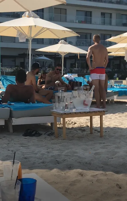 Trei fotbaliști din Liga I, filmați pe plaja milionarilor ca la cârciumă: țigări și bere fără număr!