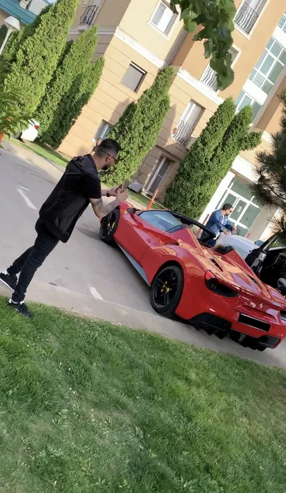 Tzancă Uraganu și-a pus "aghiotantul" să-i facă poze în fața mașinii/ Sursă foto: CANCAN.RO