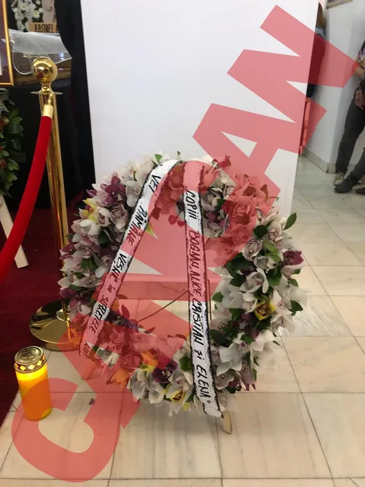 Coroana pe care copiii lui Alexandru Arșinel au depus la căpătâiul tatălui lor / (Sursa: CANCAN.RO)