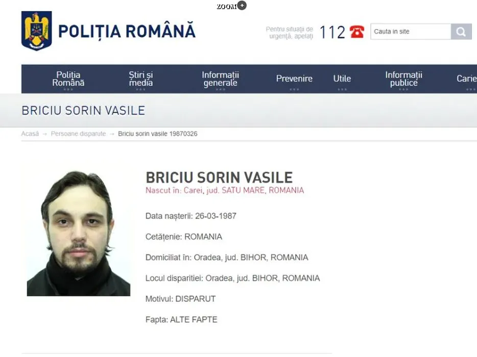 Sorin Vasile Briciu este de negăsit / sursă foto: Poliția Română