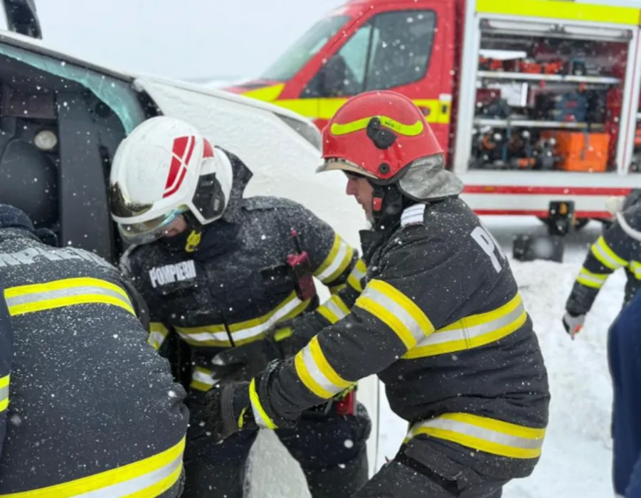Un microbuz s-a răsturnat pe drumul București-Giurgiu. A fost activat planul roșu/ sursă foto: ISU Giurgiu