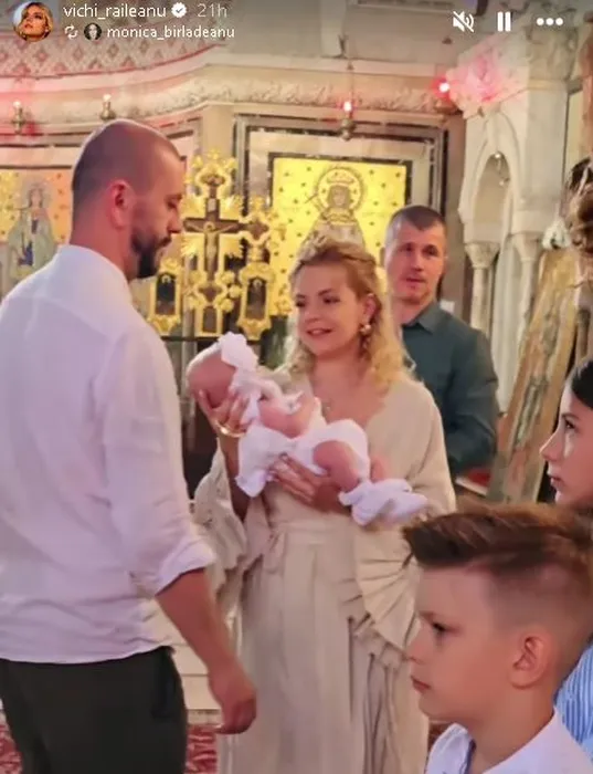 Vichi Răileanu și Adrian Ștefănescu - la botezul fetiței lor/ sursă foto: Instagram