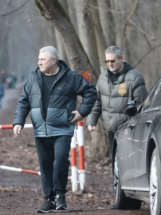 Victor Becali și amicul se retrag către mașină (Foto: CANCAN.RO)