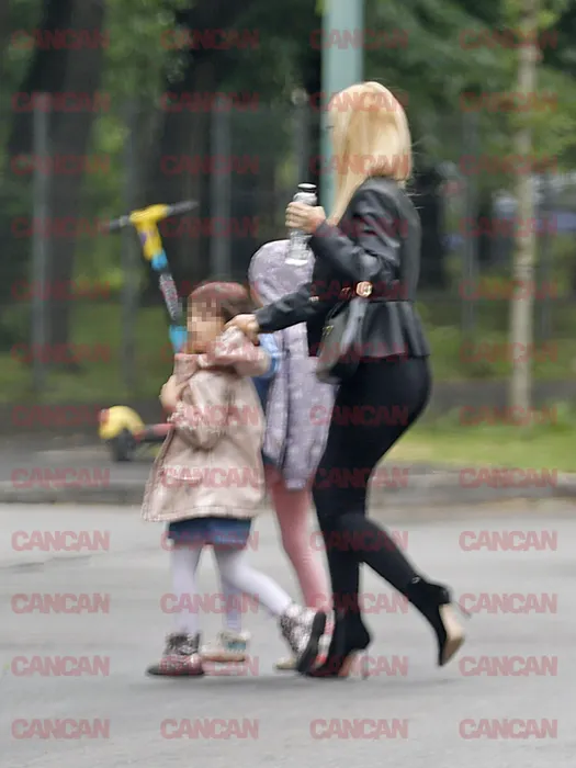 Andreea Bălan traversează neregulamentar strada cu cele două fetițe