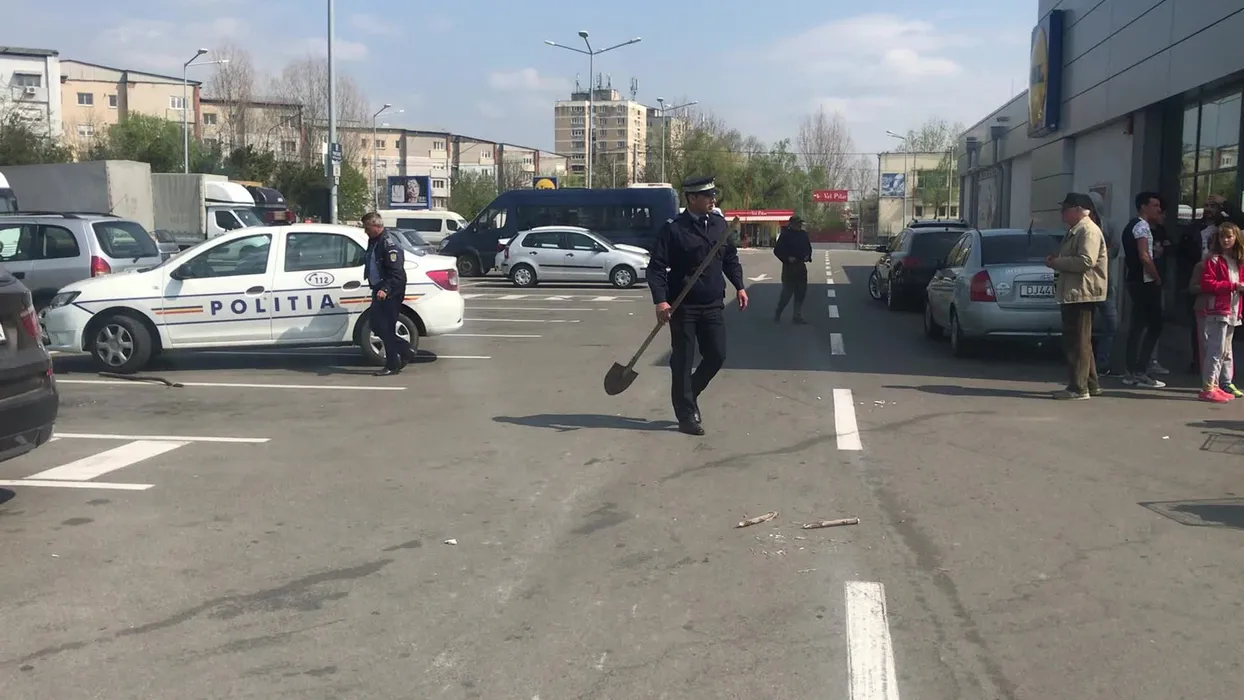 A fost bătaie cu lopeți în parcarea unui supermarket din Balș
