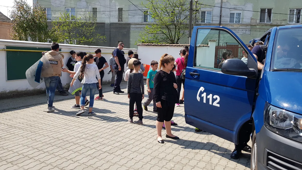 VIDEO. Zeci de copii din Arad au fost lăsați să se joace cu arme adevărate, apoi au fost băgați în dubele Jandarmeriei
