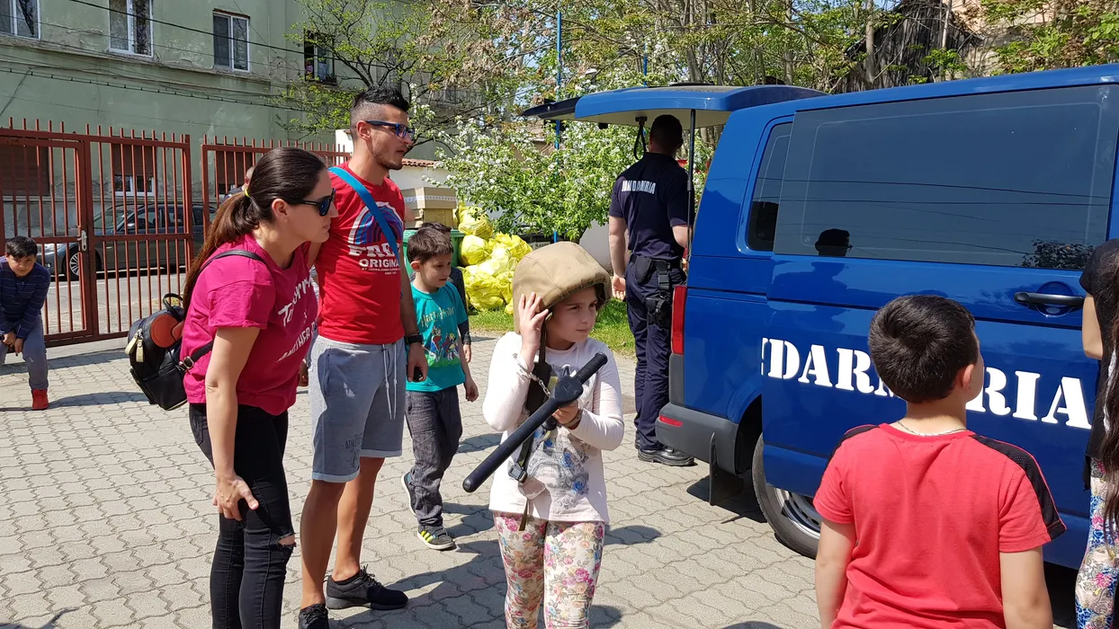 VIDEO. Zeci de copii din Arad au fost lăsați să se joace cu arme adevărate, apoi au fost băgați în dubele Jandarmeriei