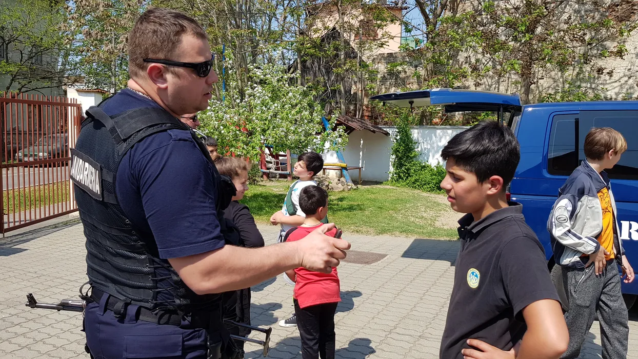 VIDEO. Zeci de copii din Arad au fost lăsați să se joace cu arme adevărate, apoi au fost băgați în dubele Jandarmeriei