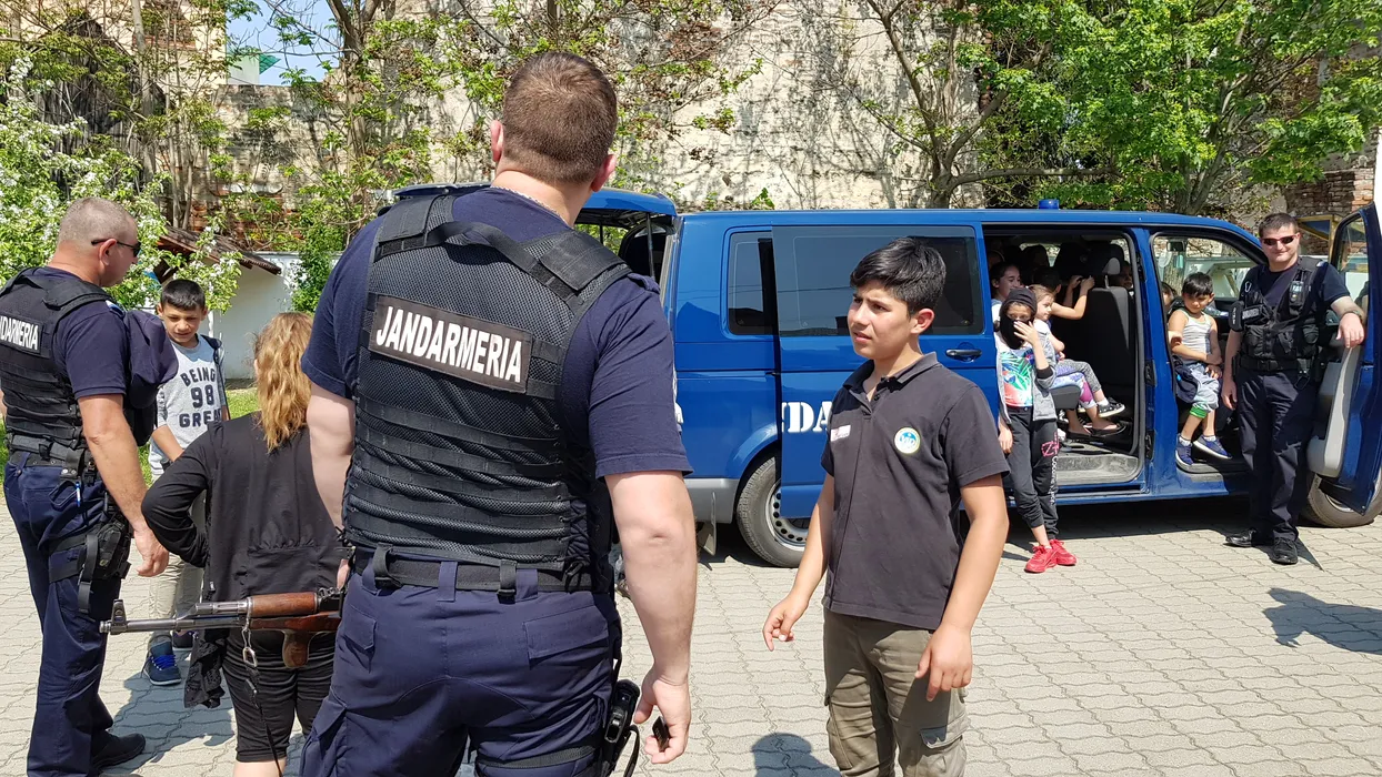 VIDEO. Zeci de copii din Arad au fost lăsați să se joace cu arme adevărate, apoi au fost băgați în dubele Jandarmeriei