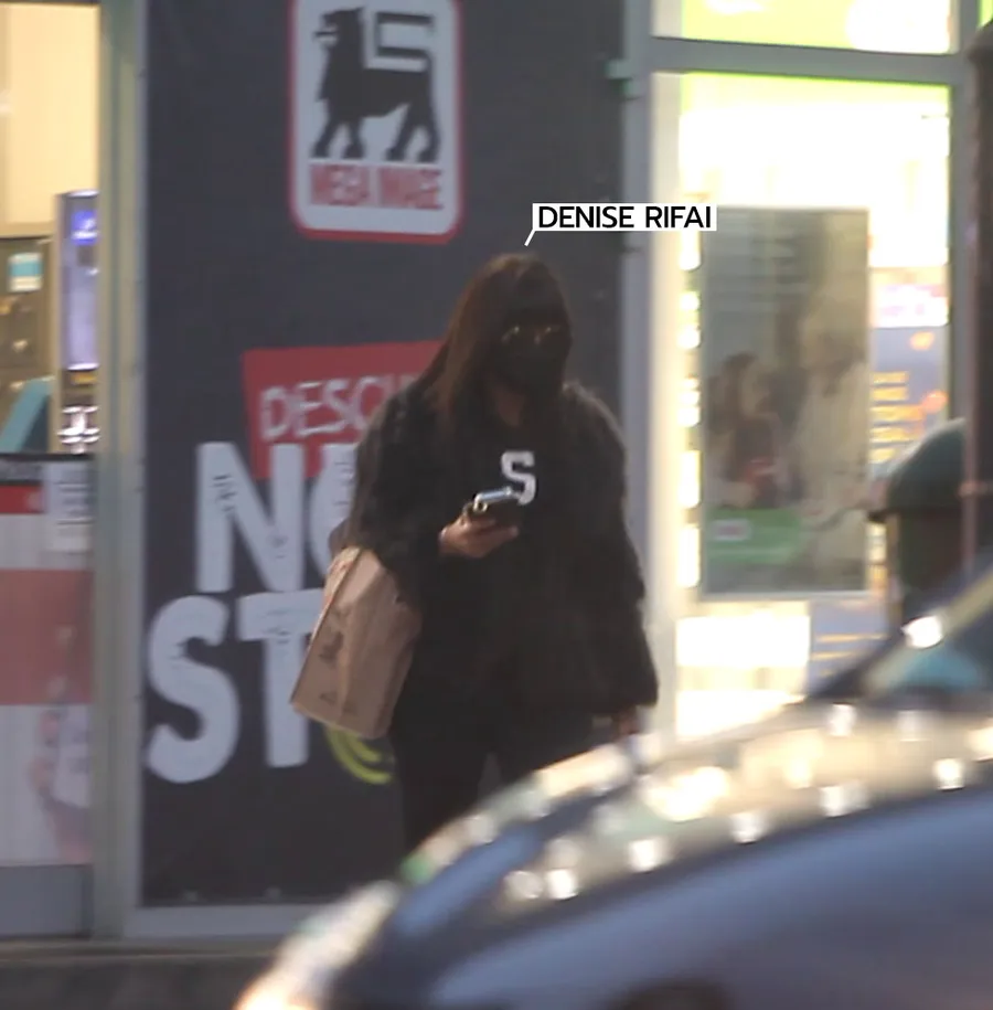 Cu plasa de rafie pe umăr, exact cum își poartă poșetele de brand, așa a ieșit Denise Rifai din supermarket. Desigur, modalitatea prin care și-a cărat cumpărăturile până la mașină s-a potrivit perfect cu ținuta aleasă. Pantaloni mulați, tricou și haină de blană. Toate negre! Așa cum e legal, masca de protecție purtată corespunzător, și ea tot neagră, nu putea lipsi. Iar ochelarii supradimensionați au făcut ca întreaga apariție să nu poată trece neobservată.