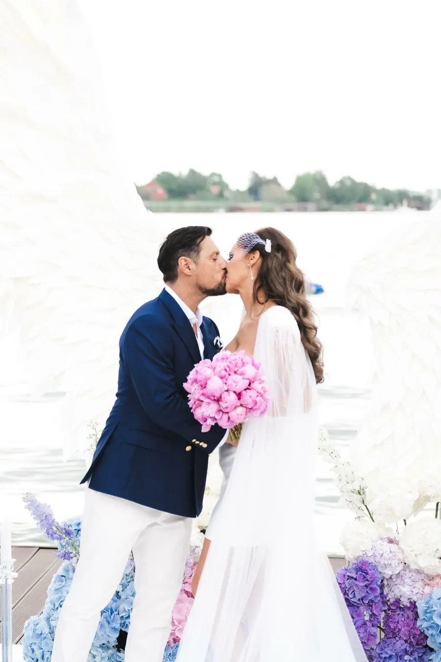 Ceremonia civilă a fost organizată pe malul lacului Snagov, într-un cadru de poveste