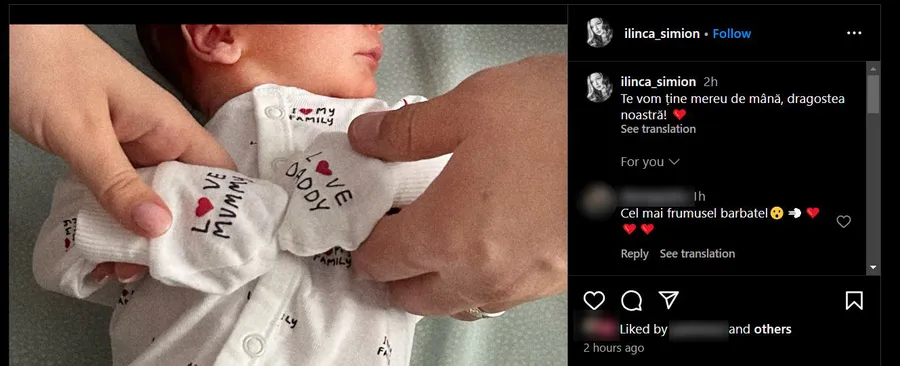 Astăzi, la șase zile de când soția liderului AUR a născut, Ilinca Simion a încărcat o imagine, în spațiul public, care are o însemnătate aparte. A încărcat o fotografie cu fiul lor, al cărui chip nu este dezvăluit. De altfel, se observă că Ilinca și George Simion îl țin pe micuțul lor de mâini.