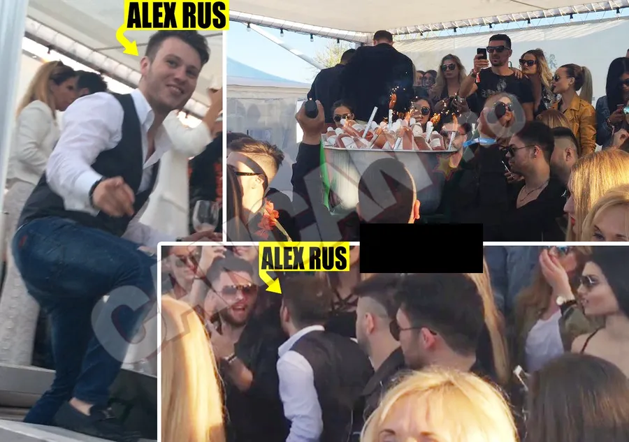 Alex a petrecut alături de gașca lui de prieteni, printre care și câțiva englezi, multe fete, dar și nepotul cunoscutului Beinur – Altay. Ei au închiriat pentru câteva ore o masă în club, unde au băut foarte mult alcool. De altfel, Alex a cumpărat pentru întreaga lui gașcă o roabă cu vin scump – aproximativ 40 de sticle – care a fost păzită în permanență de un bodyguard.