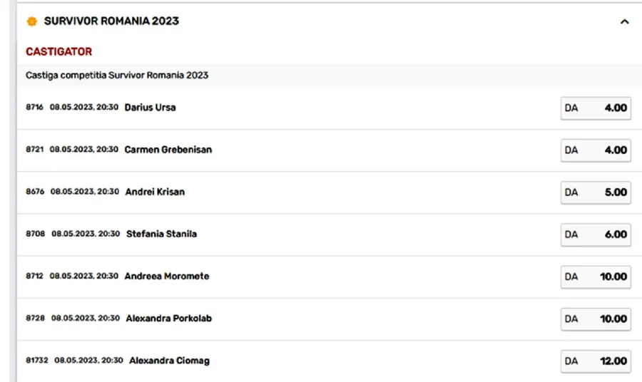 Astfel, potrivit cotelor de la casele de pariuri, cu doar câteva zile în urmă, Carmen era favorită, cu cea mai cotă, de 4.00, la egalitate cu Dan Ursa, urmați de Andrei Krișan și Alexandra Porkolab.