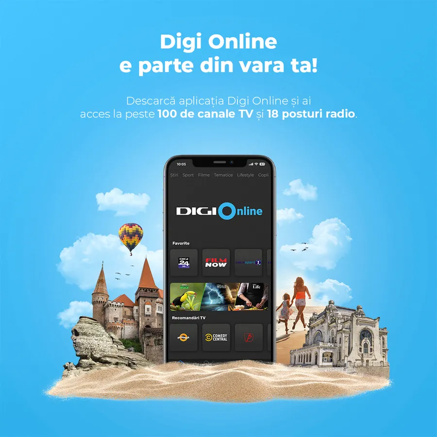 Pentru că vara stăm prea puțin acasă, Digi RCS-RDS vine în atenția clienților săi cu un serviciu gratuit și greu de refuzat. Este vorba despre campania „Digi Online e parte din vara ta!”. Mai exact, tot ce trebuie să facă abonații este să descarce aplicația Digi Online și au la dispoziție peste 100 canale TV și 18 posturi radio.