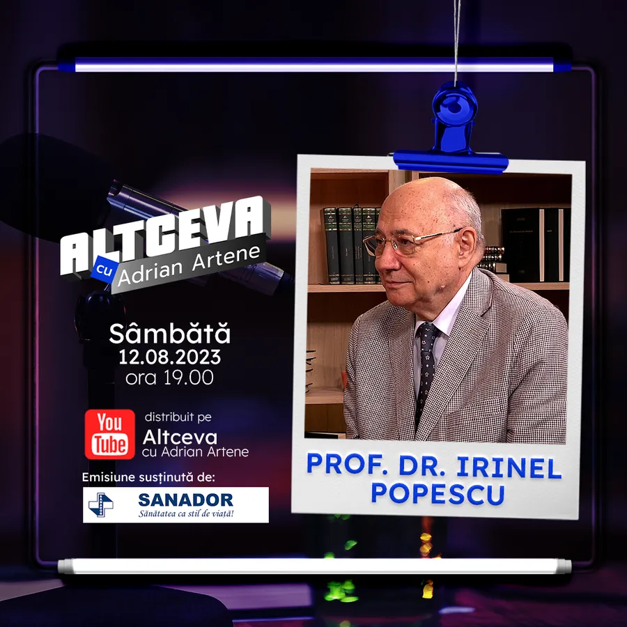Reputatul profesor doctor Irinel Popescu este invitatul lui Adrian Artene în cadrul podcastului ALTCEVA ce va fi difuzat sâmbătă, 12 august, începând cu ora 19:00.