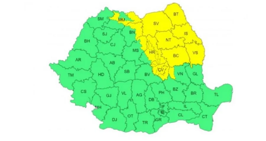 ANM a emis un cod galben de vreme rea în România
