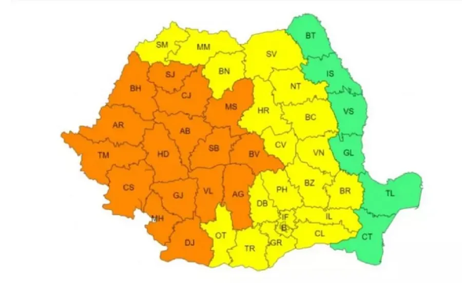 Totodată, până azi la ora 15, mai multe județe din România se află sub avertizare de cod portocaliu și galben de vreme instabilă. Sunt vizate 16 județe din centrul, vestul și sud-vestul țării: Banat, Crișana, cea mai mare parte a Transilvaniei și a Olteniei și în nord-vestul Munteniei vor fi intensificări ale vântului – cu rafale de 60-80 km/h – grindină, vijelii, frecvent descărcări electrice și averse torențiale. Se vor acumula cantități de apă de 30-40 l/mp și izolat de peste 50-60 l/mp. Codul galben de vreme rea a intrat în vigoare luni – 3 iunie – la ora 12:00 și este valabil până marți – 4 iunie – la ora 15:00.