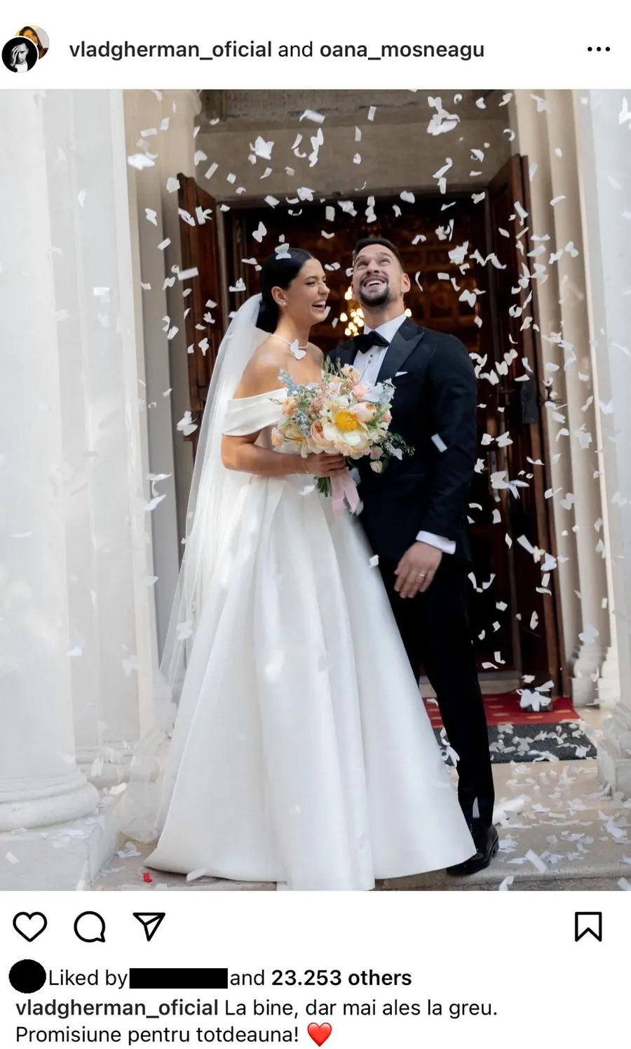 „La bine, dar mai ales la greu. Promisiune pentru totdeauna!”, este mesajul notat de Vlad Gherman, pe Instagram.