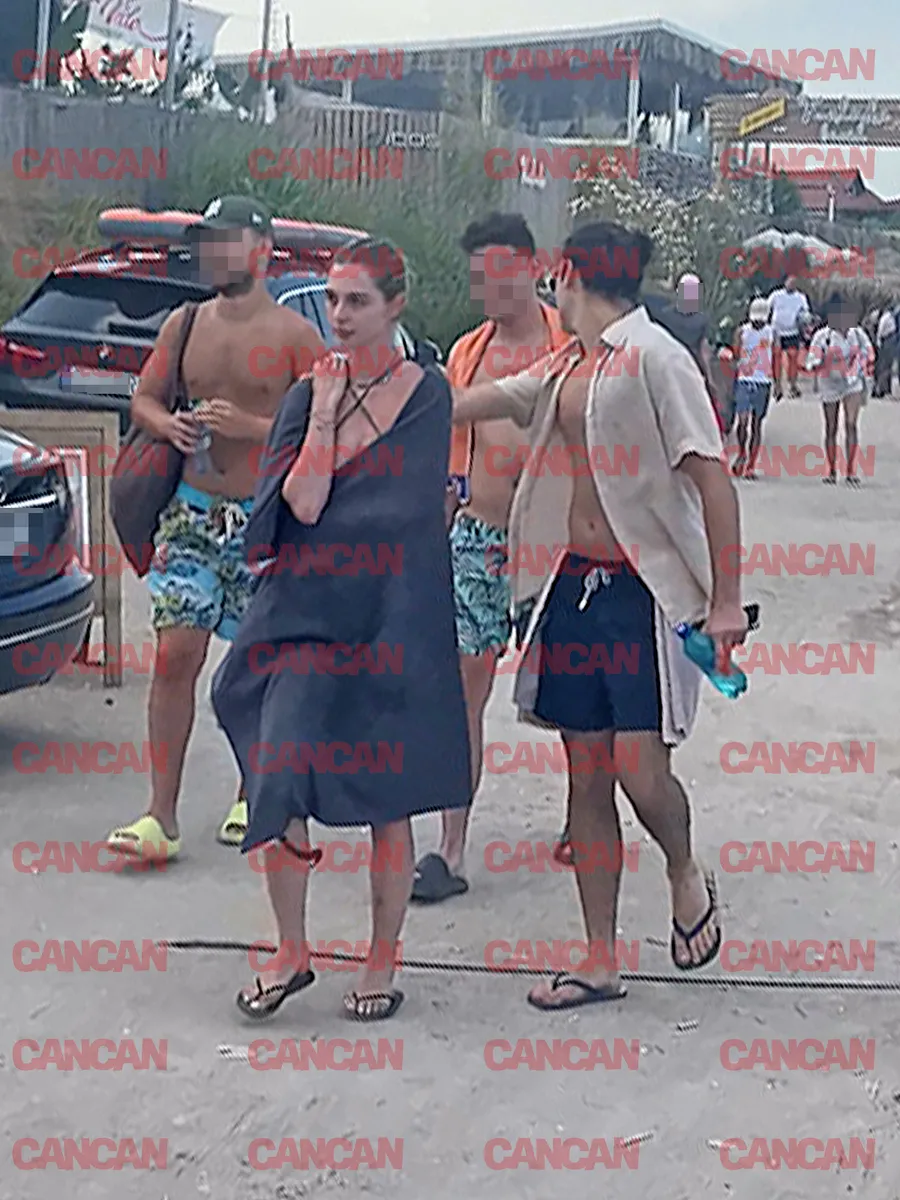 În imaginile surprinse, Radu Ștefan Bănică apare îmbrăcat lejer, cu o cămașă crem, un short negru și șlapi, cu părul prins în coadă și extrem de relaxat alături de iubita și prietenii lui, pe plajă.