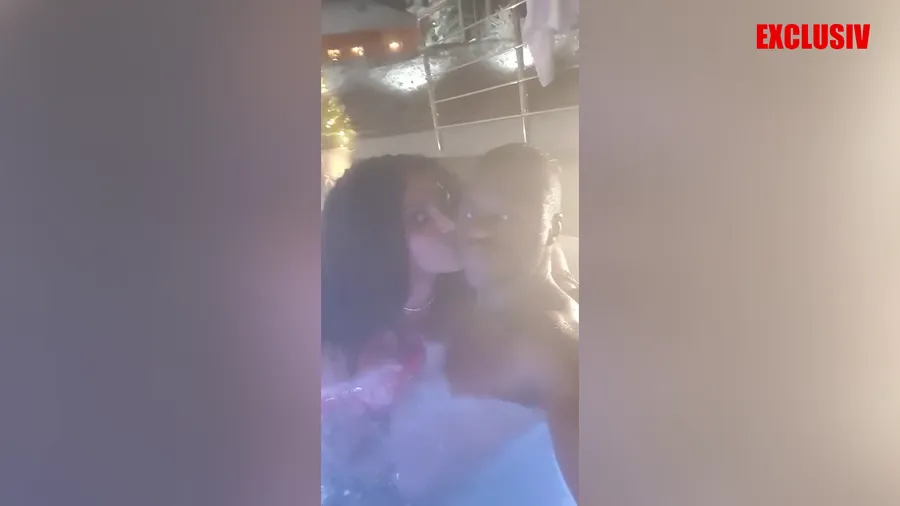 Laurette și Magaye Gueye, jucătorul echipei Dinamo, ipostza HOT, în piscina unui hotel din Poiana Brașov