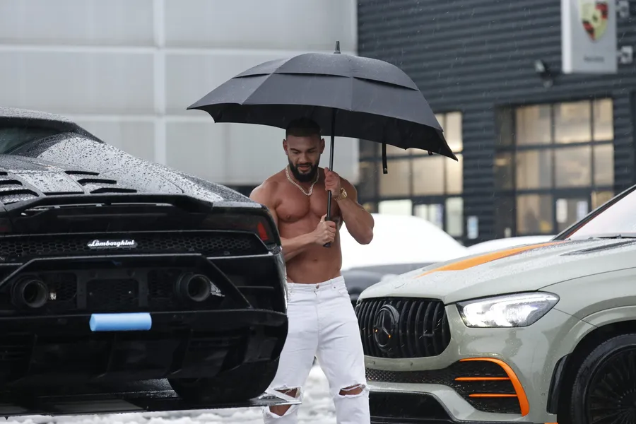 Chiar dacă și-a văzut de planul realizării de conținut pentru platformele sociale, Dorian Popa nu a uitat să se bucure de evenimentul remarcabil. Cu toate că intemperiile au transformat ziua într-una dificilă, cântărețul a văzut oportunitatea și s-a dezbrăcat pentru a face poze și filmulețe lângă bijuteria de 300.000 €.