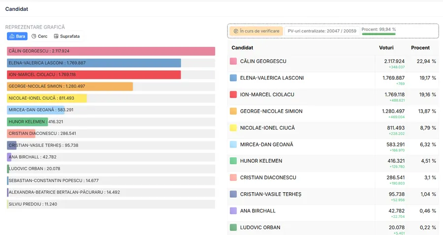 Rezultate OFICIALE PARȚIALE la alegerile prezidențiale 2024. BEC: Călin Georgescu a câștigat alegerile, Elena Lasconi e pe locul 2