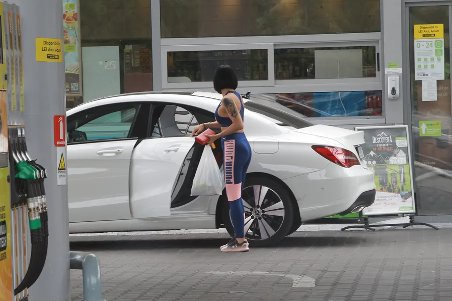 Cel mai probabil, Roxana Marinescu „bifase” antrenamentul de la sală din ziua respectivă și, în drum spre casă, și-a amintit că mai are de făcut mici cumpărături. Zis și făcut! A parcat mașina, s-a învârtit rapid printre rafturile benzinăriei, a plătit, iar în parcare a fost remarcată pe loc. Ce-i drept, la cât de bine arată, nici nu avea cum să treacă neobservată!