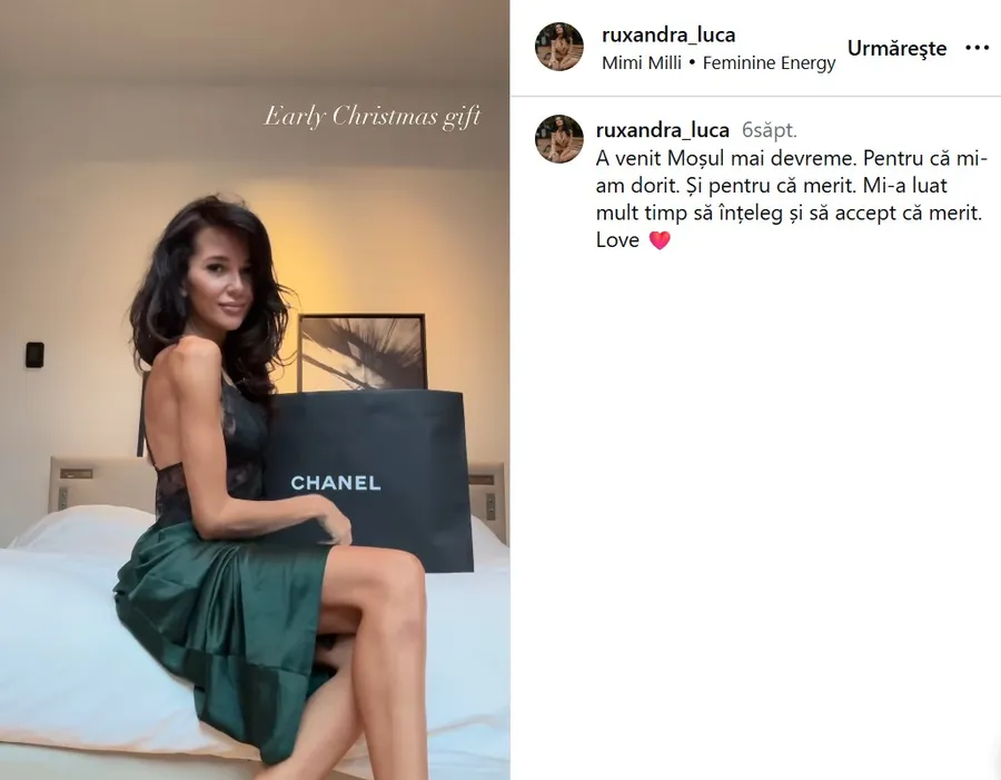 Înainte de Crăciun, vedeta Antena 1 a postat un video, pe rețelele de socializare, în care arată binemeritatul cadou primit de la „moșu”, o poșetă Channel, pe care spune că simte că o merită din plin.