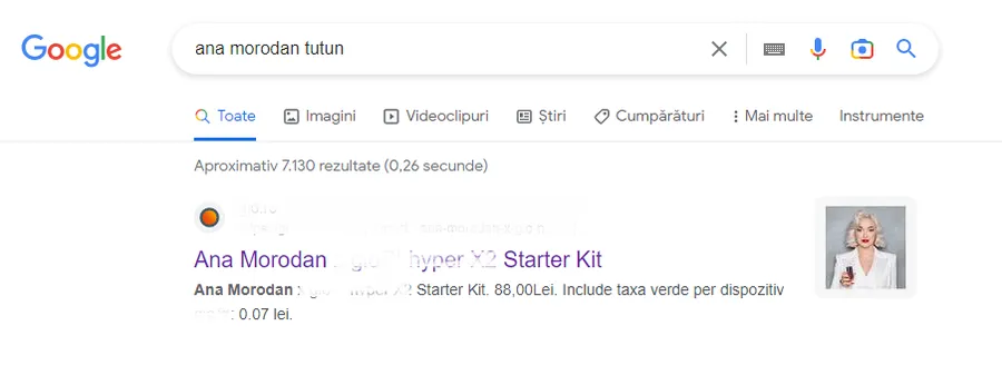 Pe Google apare în continuare numele vedetei asociat brand-ului, însă în momentul în care link-ul este accesat, pe pagina oficială a companiei, poza blondinei nu mai există.