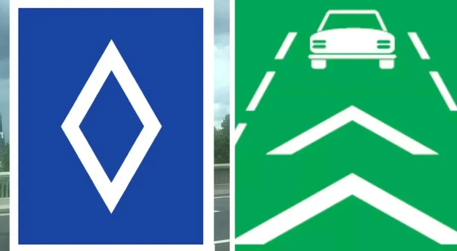 Unul dintre indicatoarele care a creat confuzie este deja utilizat pe șoselele din Franța și este reprezentat printr-un romb alb pe fundal albastru. Acesta semnalează benzi de circulație dedicate anumitor categorii de vehicule, precum autobuzele, taxiurile, mașinile electrice și autovehicule cu mai mult de două persoane.