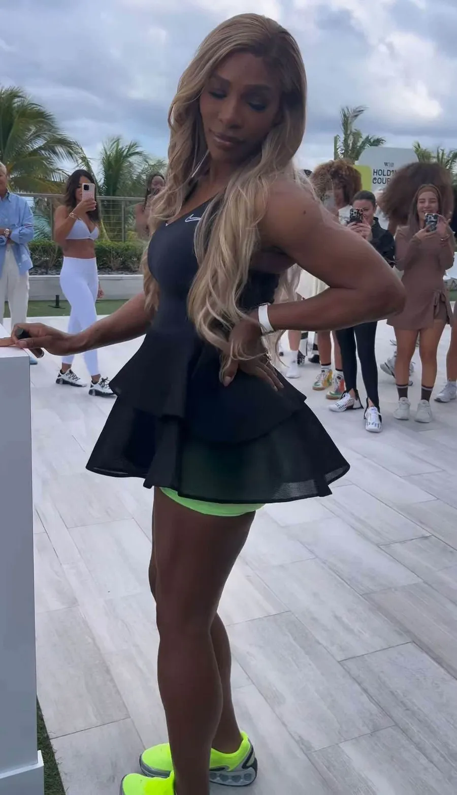 Într-un alt videoclip foarte recent, sportiva – care a negat recent afirmațiile potrivit cărora și-ar albi pielea – arăta mai slabă ca niciodată în timp ce își etala abilitățile de dansatoare într-o rochie de tenis neagră și pantaloni scurți verde neon.