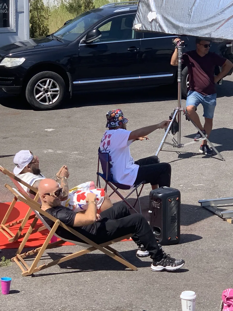 Dani Mocanu, Shaggy și Costi Ioniță pe set, în fața clubului OXYA / (Foto: CANCAN.RO)