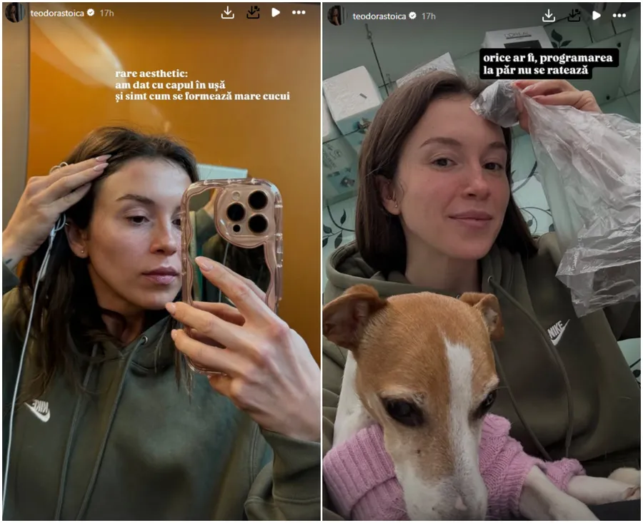 Însă, micul incident nu a oprit-o pe Teodora. Cu cucuiul în frunte și cu punga de gheață pe el, tânăra a pornit către coafor.