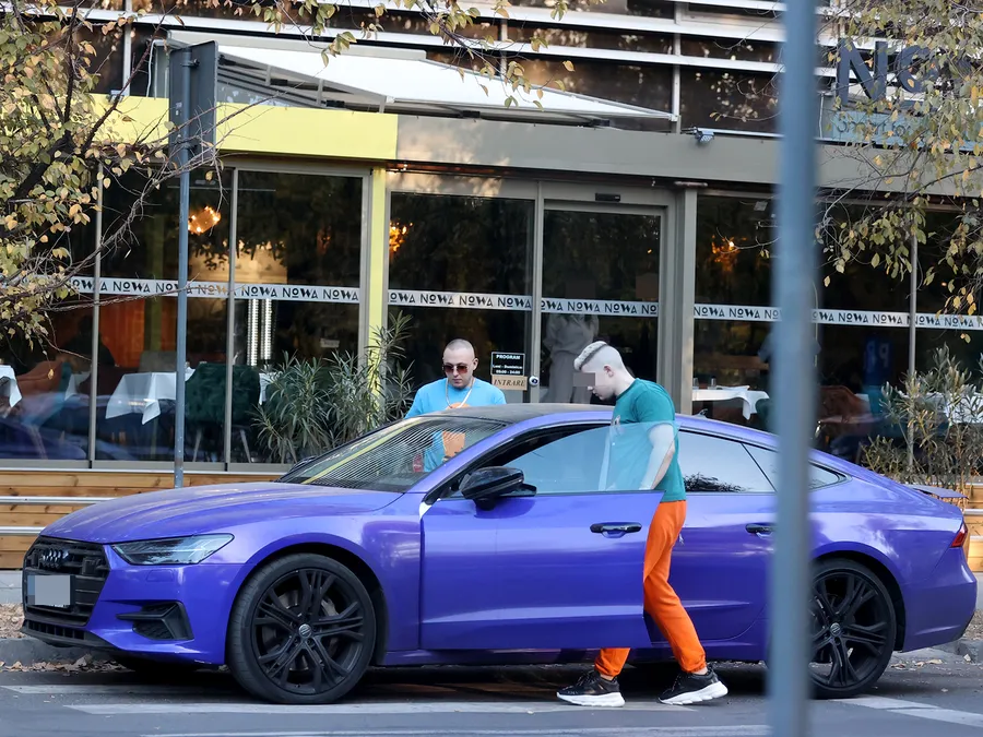 Vlad Obu, zis Spaima litoralului, și prietenul lui au părăsit restaurantul și se îndreaptă către mașină (Foto: CANCAN.RO)
